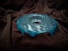 Antique Venetian Chandelier glass dish pan with blue rim T47