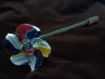 Antique Murano chandelier flower, blue, red, yellow and white. 200mm high, flower head 80mm wide,