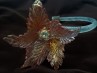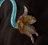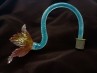 Antique Murano chandelier pink and gold flower with blue glass stem. Overhang flower