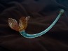 Antique Murano chandelier pink and gold flower with blue glass stem. Approx. 230mm high, flower head 95mm wide,
