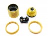3 PART E27 / ES LAMP HOLDER IN GOLD FINISH - 10 MM SCREW THREAD FIXING - THREADED SKIRT AND SHADE RINGS - 55MM HIGH - 40MM WIDE - LOCKING CAP - NO EARTH - 2 WAY SCREW-IN TERMINALS