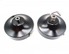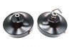 Black ceiling rose with chrome cord grip or hook- fixing strap / bracket with earth point and chrome nuts