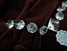 Chandelier crystal button strand with diamond 3 way divider and glass rosette. These are antique pieces originally pinned.