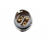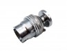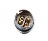 B22 large standard bayonet cap with threaded skirt and shade ring in plated finish.