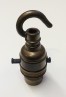 switched lamp holder with open hook and ring nut in various finishes B22 large standard bayonet cap