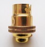 bulb holder lampholder BC / B22 earthed plated 45mm high x 32mm width 10mm thread entry plain skirt click right hand arrow for singles , 3's , and 5's and 10's