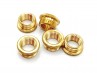Solid brass reducers - half inch 26 tpi to 10mm metric internal thread, male to female, knurled head, 5 reducers per pack. Ideal for antique lighting restoration and repair